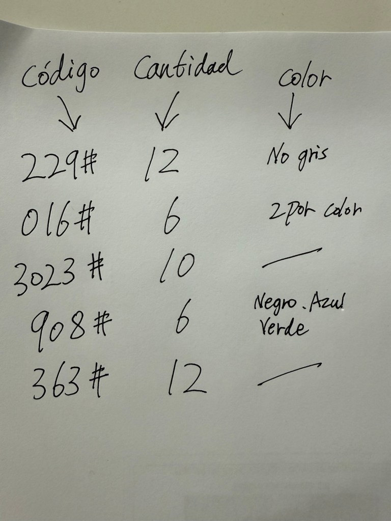Saque una hoja de papel, escriba el modelo y la cantidad que necesita como se muestra en la imagen y envíelo por whatsapp (+56 9 9856 5982)